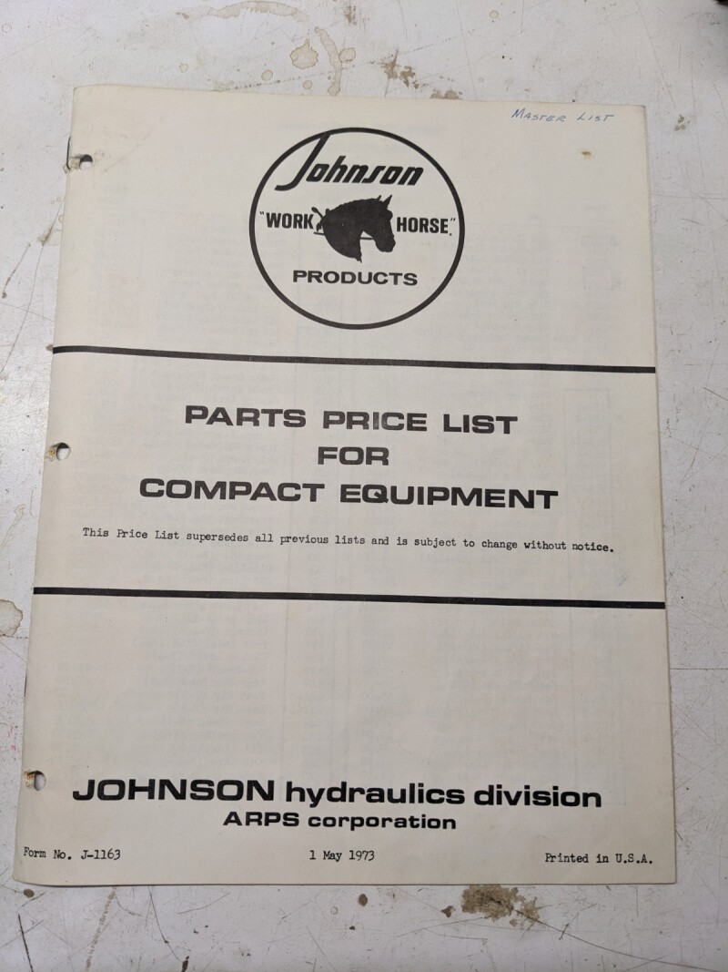 Johnson Work Horse Master Parts Price List Compact Equipment Tractors 1973