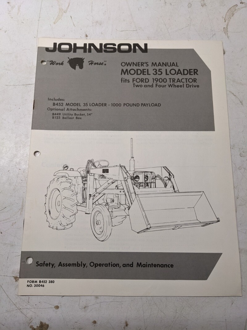 Johnson Work Horse Owners Manual Tractor Loader Model 35 Series Ford 1900 B452
