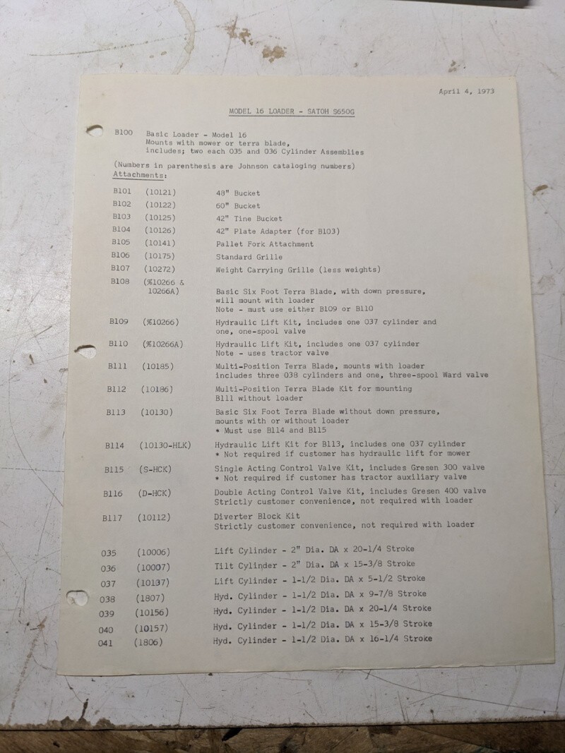 Johnson Work Horse Products Model 16 Loader Satoh S650G Kit Listings 1973