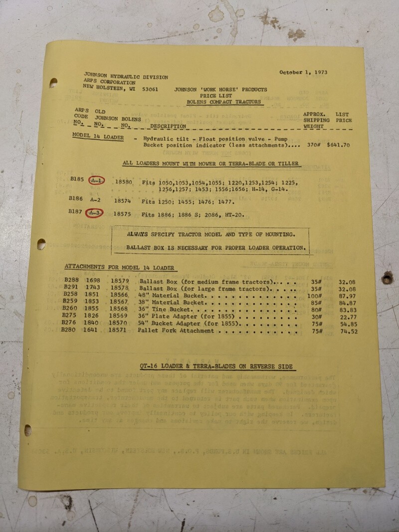 Johnson Work Horse Products Price List Bolens Compact Tractors 1973 Model 14 24