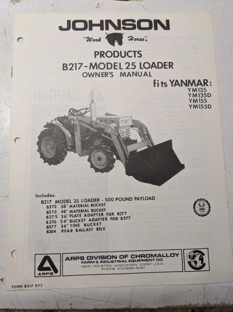 Johnson Workhorse 25 Loader Tractor Owner Manual Part List Yanmar B217 Ym135D