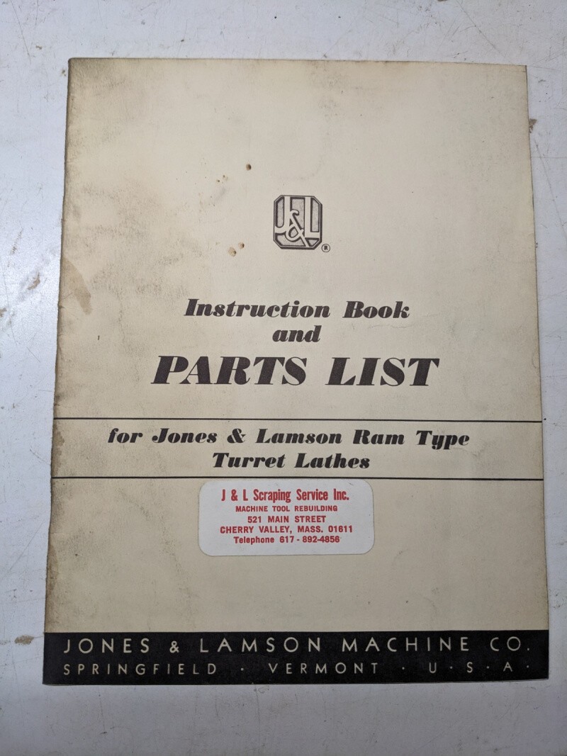 Jones Lamson Machine #3 4 5 7 8 Saddle Lathe Parts List Operator Manual 1951