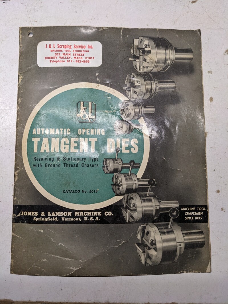 Jones Lamson Machine Automatic Opening Tangent Dies 501B Sales Catalog Brochure
