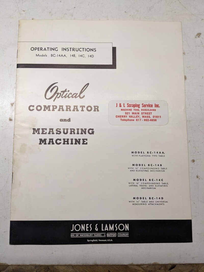 Jones Lamson Operating Manual Optical Comparator Bc-14Aa 14B 14C 14D Shop Book