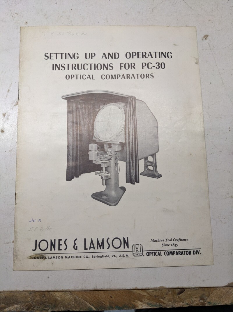 Jones Lamson Setup Operating Instruction Shop Manual Optical Comparator Pc-30