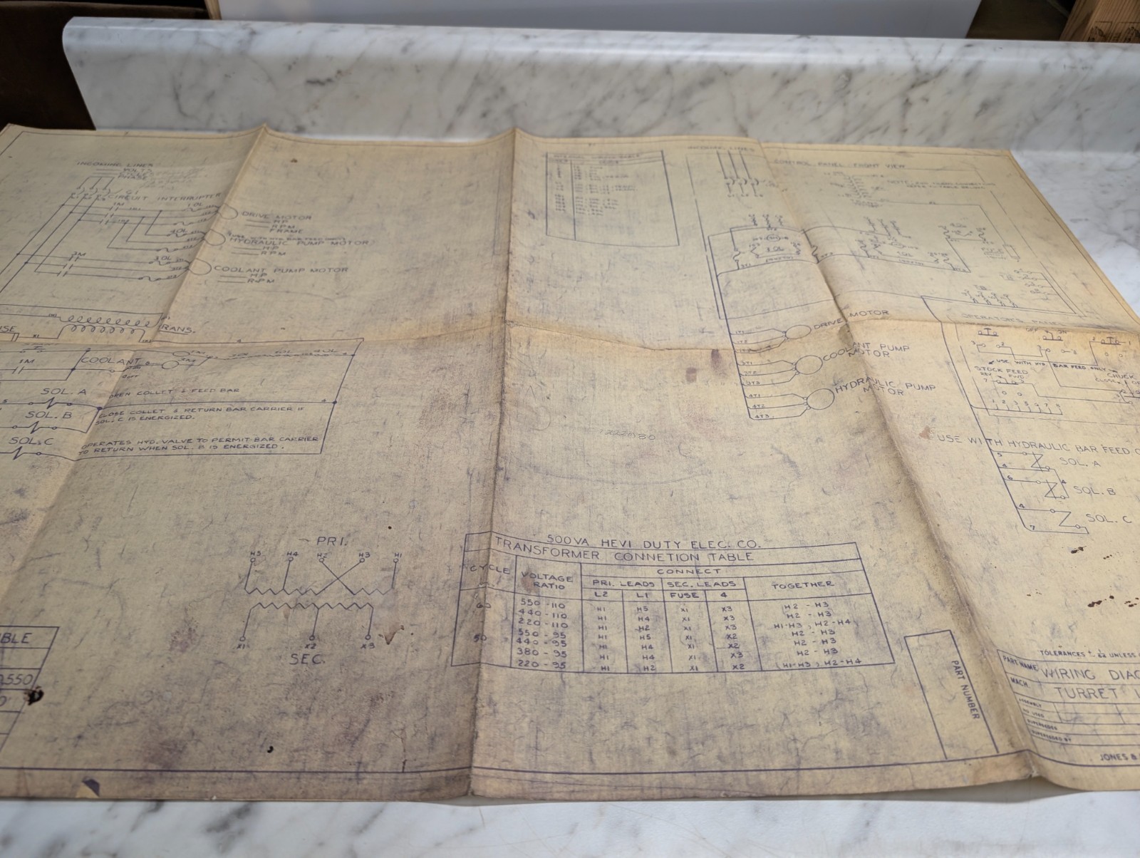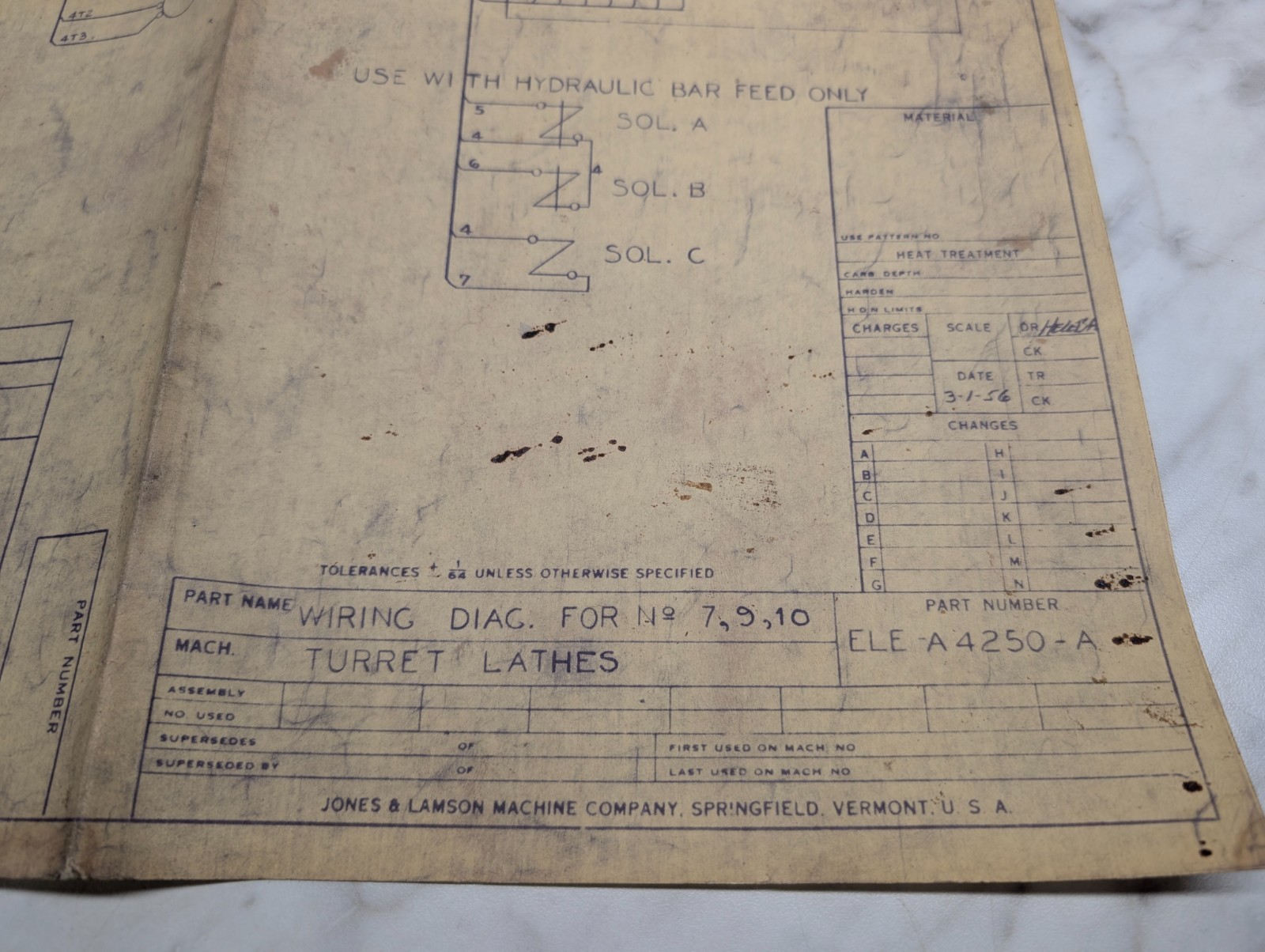 Jones & Lamson Turret Lathe Machine Tool Electrical Drawing Diagram Print Wiring