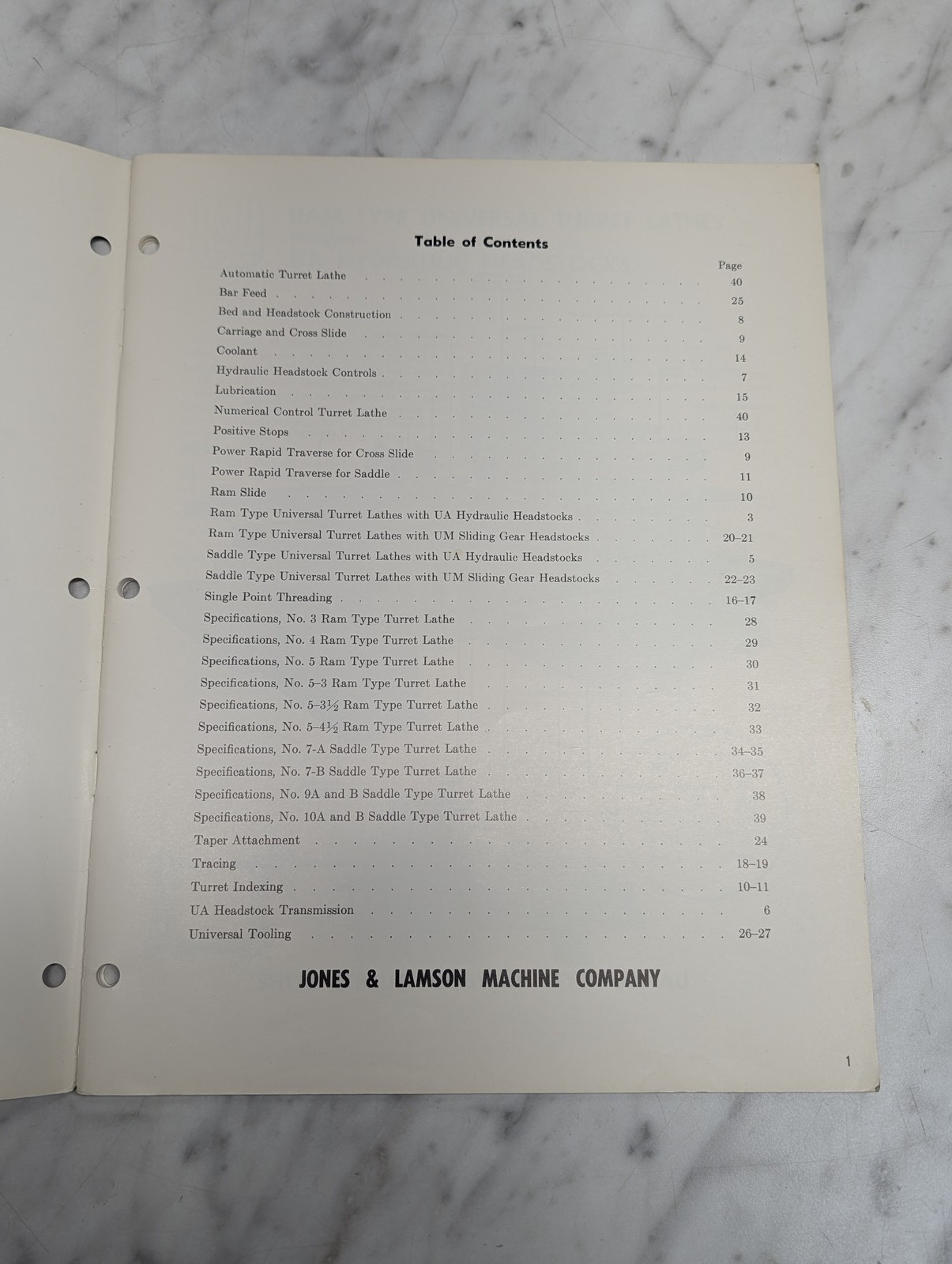 Jones Lamson Universal Turret Lathes Sales Literature Brochure