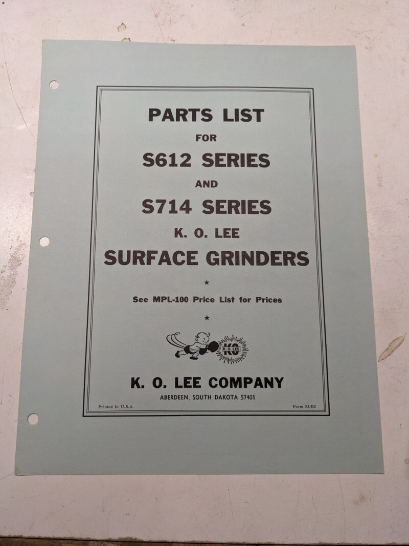 K O Lee Repair Parts List Book Catalog Manual Grinders A600 601 603 1957