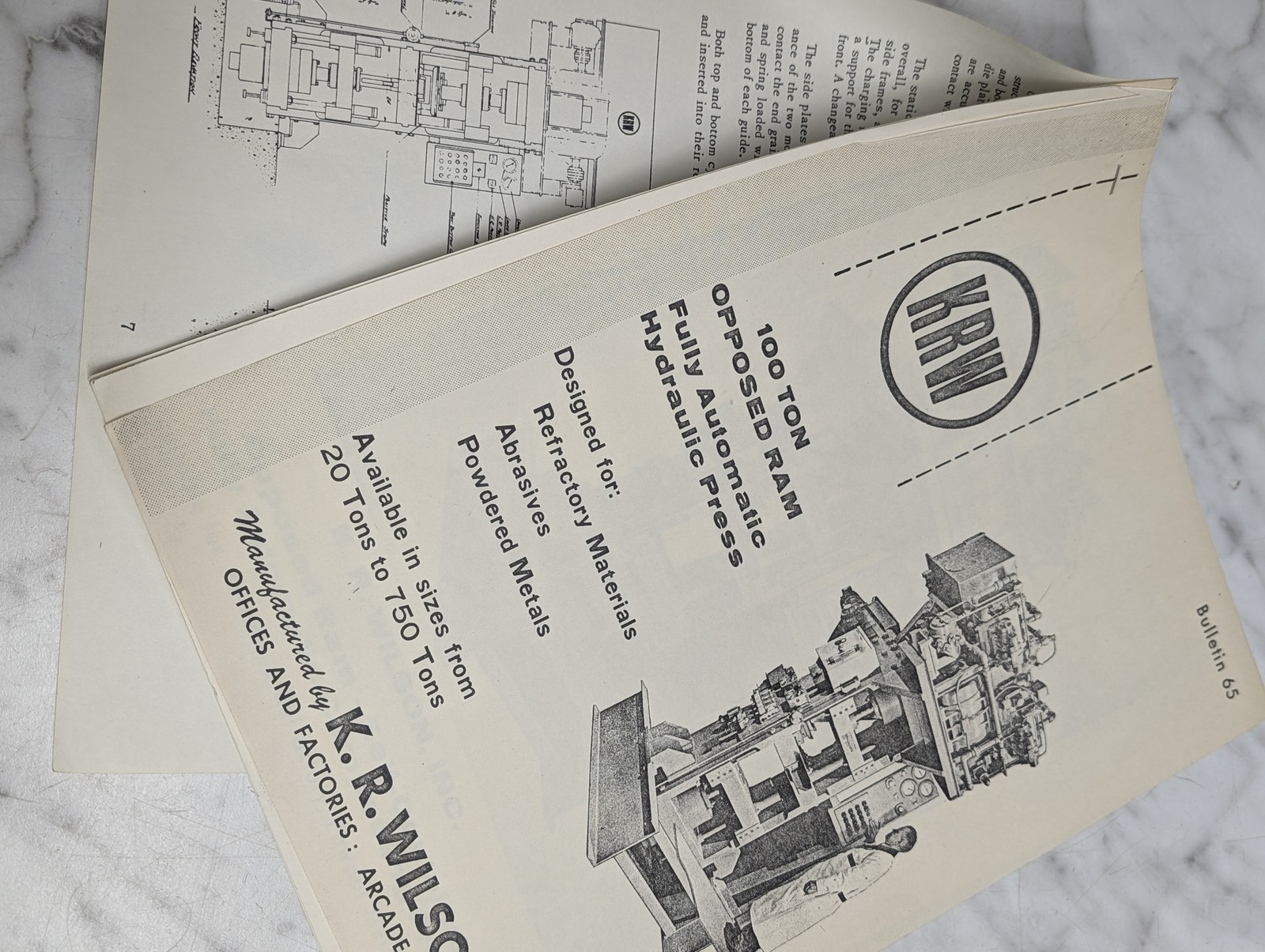 K R Wilson 100 Ton Opp0Sed Ram Fully Automatic Hydraulic Press Bulletin 65