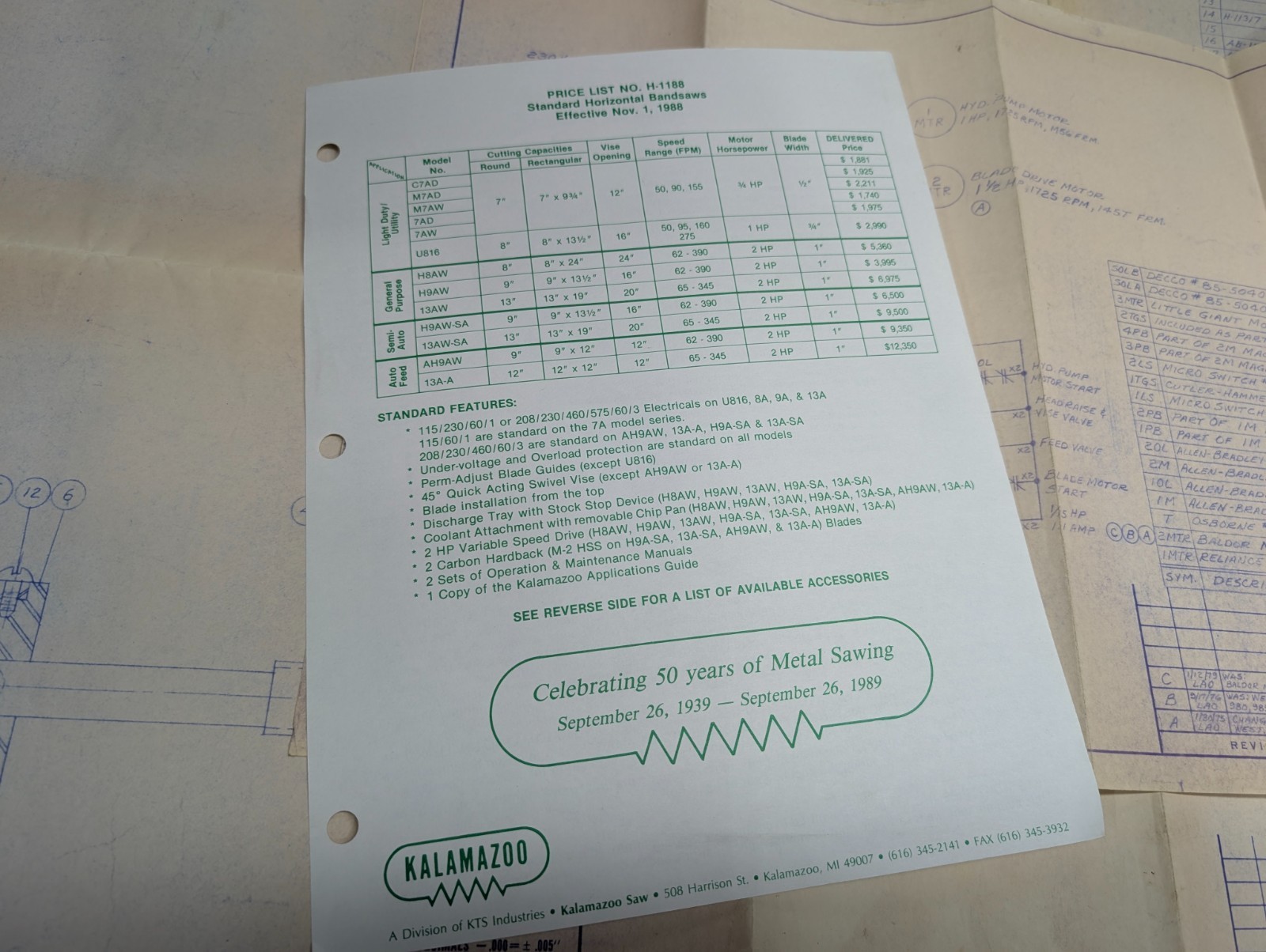Kalamazoo Ah9Aw Machine Tool Drawings Diagrams Engineering Blue Prints