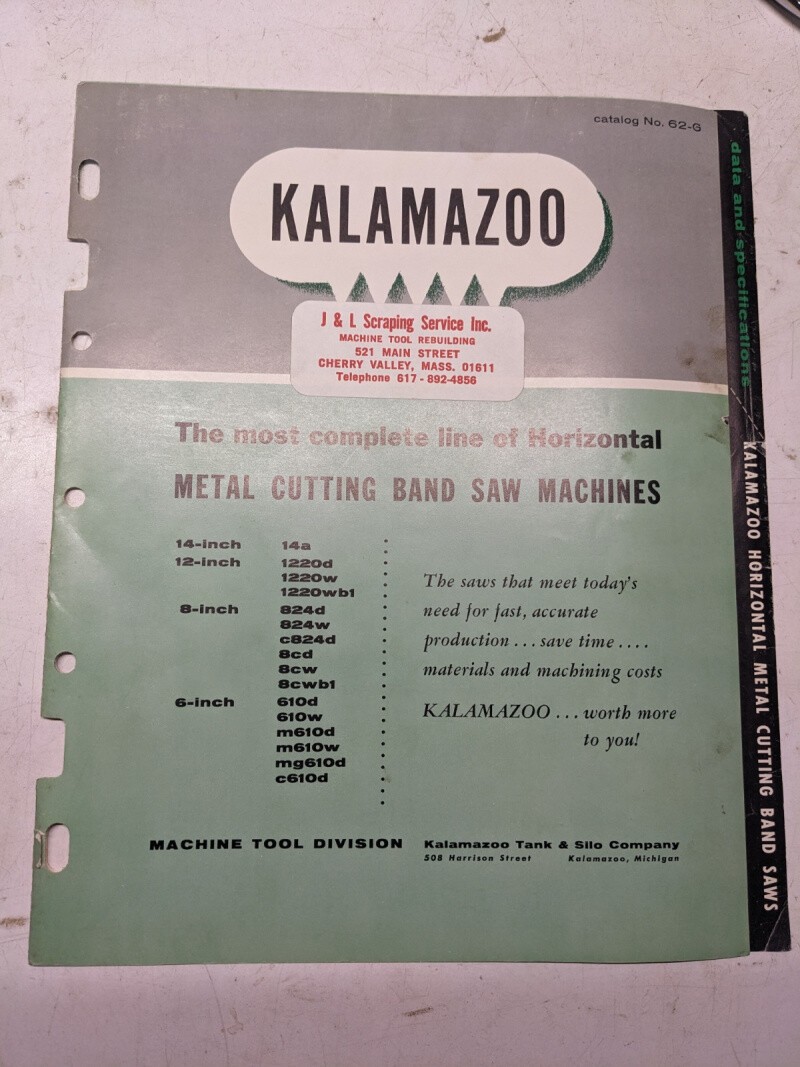 Kalamazoo Band Saw Machine Tool Sales Brochure Catalog Specifications #62-G