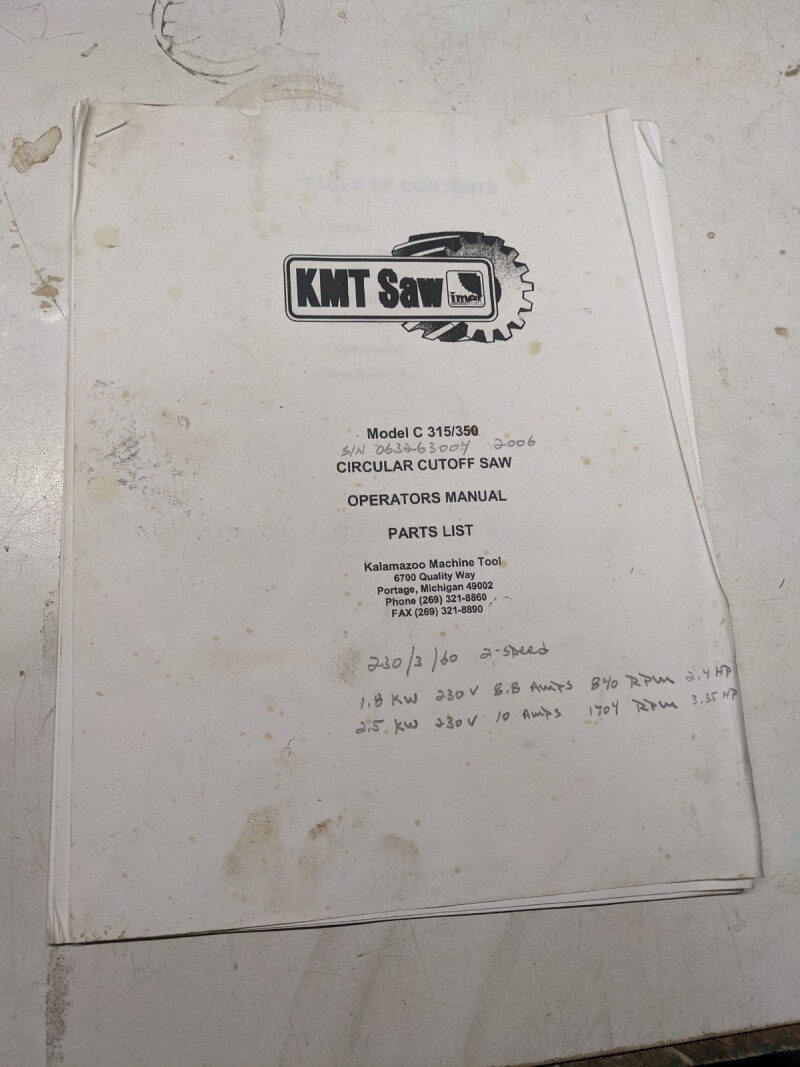 Kalamazoo Cut Off Saw Service Manual Parts List Book C 315/350 Model Machine