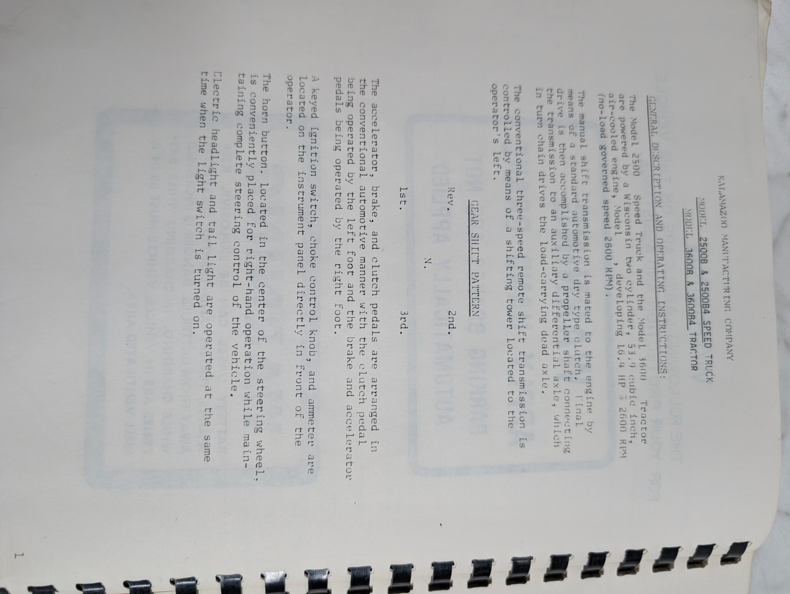 Kalamazoo Model 2500B4 4 Wheel Speed Truck Instruction Parts List Catalog Manual