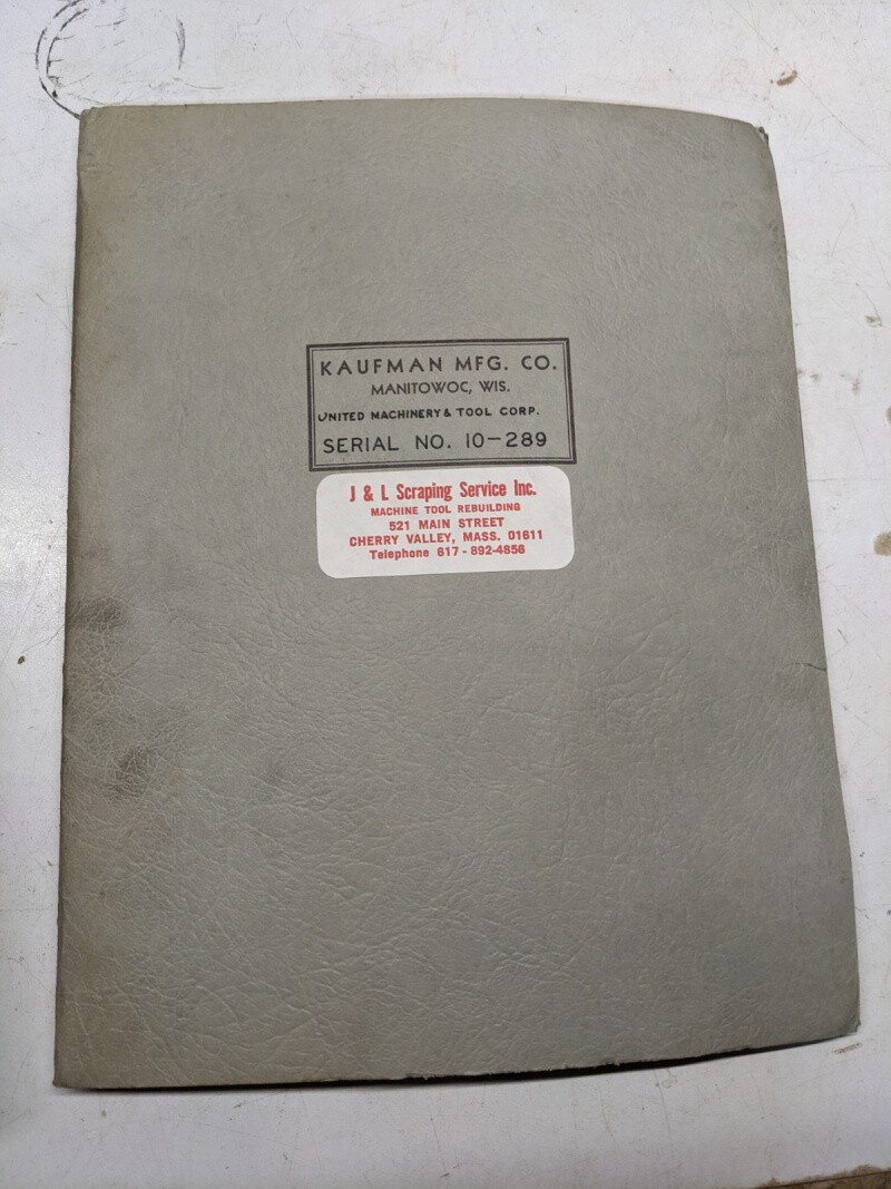 Kaufman United Lead Screw Tapping Machine Operation Service Parts List Manual
