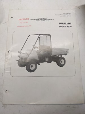 Kawasaki Mule 2510 2520 Kaf620-A1/B1 Utv Utility Vehicle Assembly Manual 1992