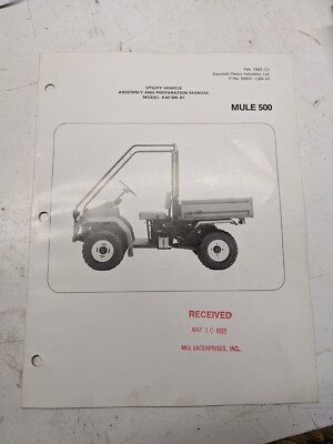 Kawasaki Utility Vehicle Assembly Preparation Manual Kaf300-B1 Mule 500 1993