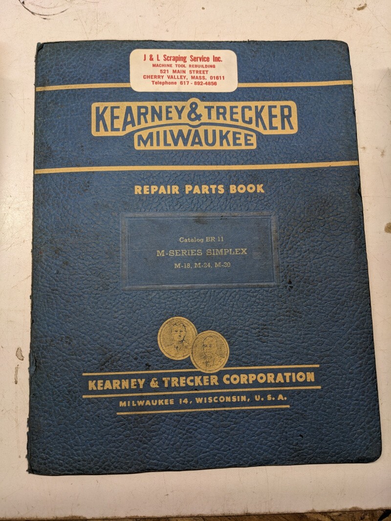 Kearney Trecker Milling Machine Repair Part List Book Manual Series M-18 24 30