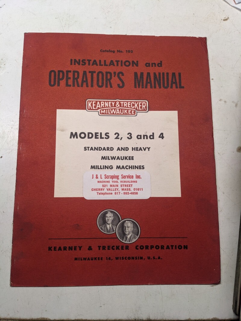 Kearney & Trecker Milwaukee Operator’S Manual 102 Model #2 3 4 Milling Machine