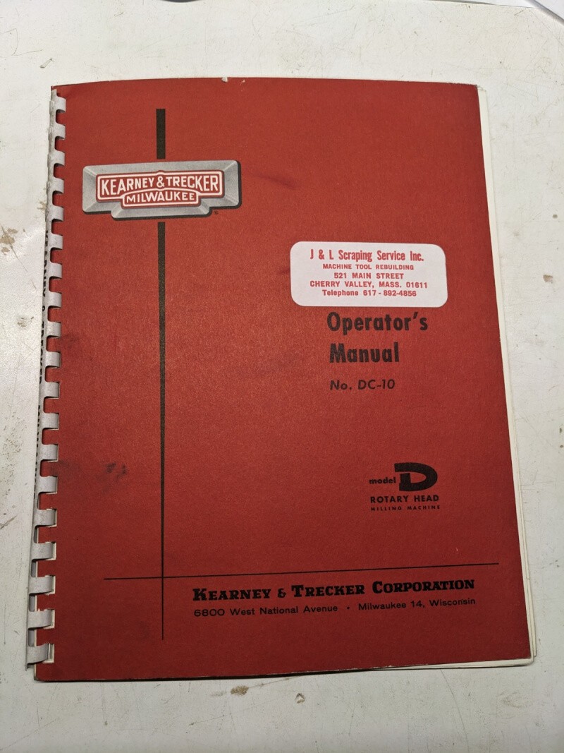 Kearney & Trecker Milwaukee Operator’S Manual Dc-10 Model #2D Milling Machine