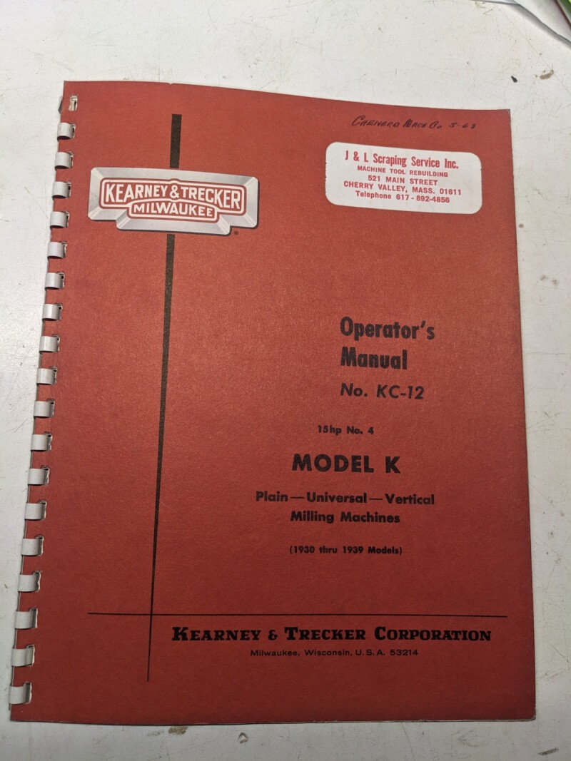 Kearney & Trecker Milwaukee Operators Manual Kc-12 Model K Milling Machine #4