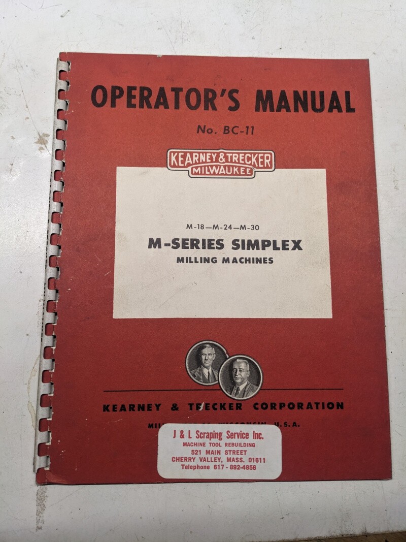 Kearney & Trecker Milwaukee Operators Manual Model M-18 24 30 M Series Simplex