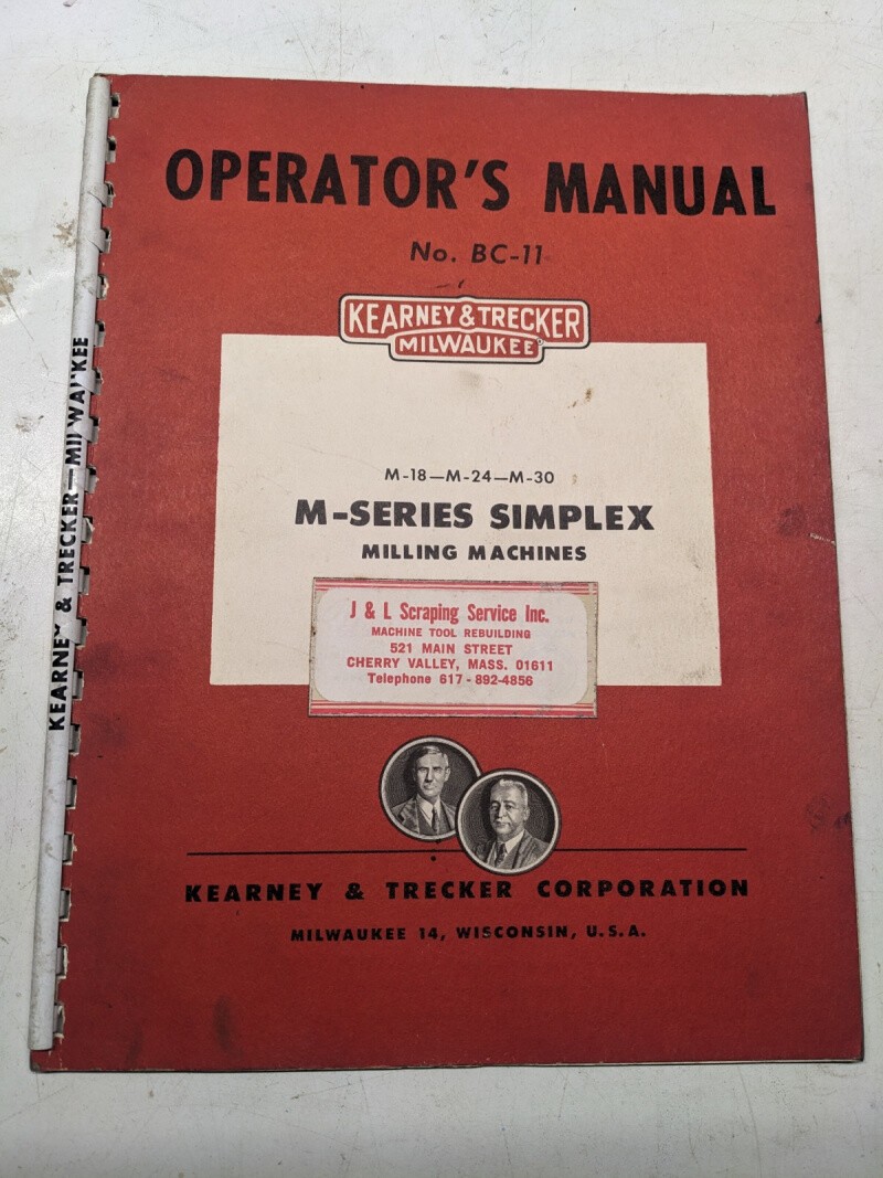 Kearney & Trecker Milwaukee Operators Manual Model M-18 24 30 Milling Bc-11