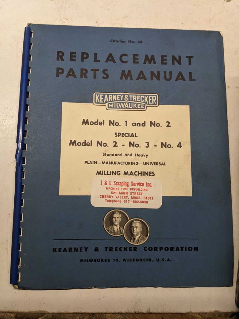 Kearney Trecker Milwaukee Parts List Book Manual 43 Model #1 2 Special 2 3 4