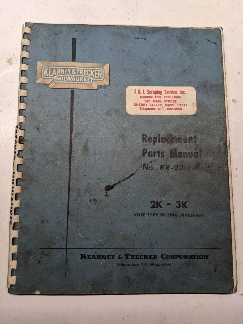 Kearney Trecker Milwaukee Parts List Book Manual Kr-20 Model K #2K #3K 1950 Vmc