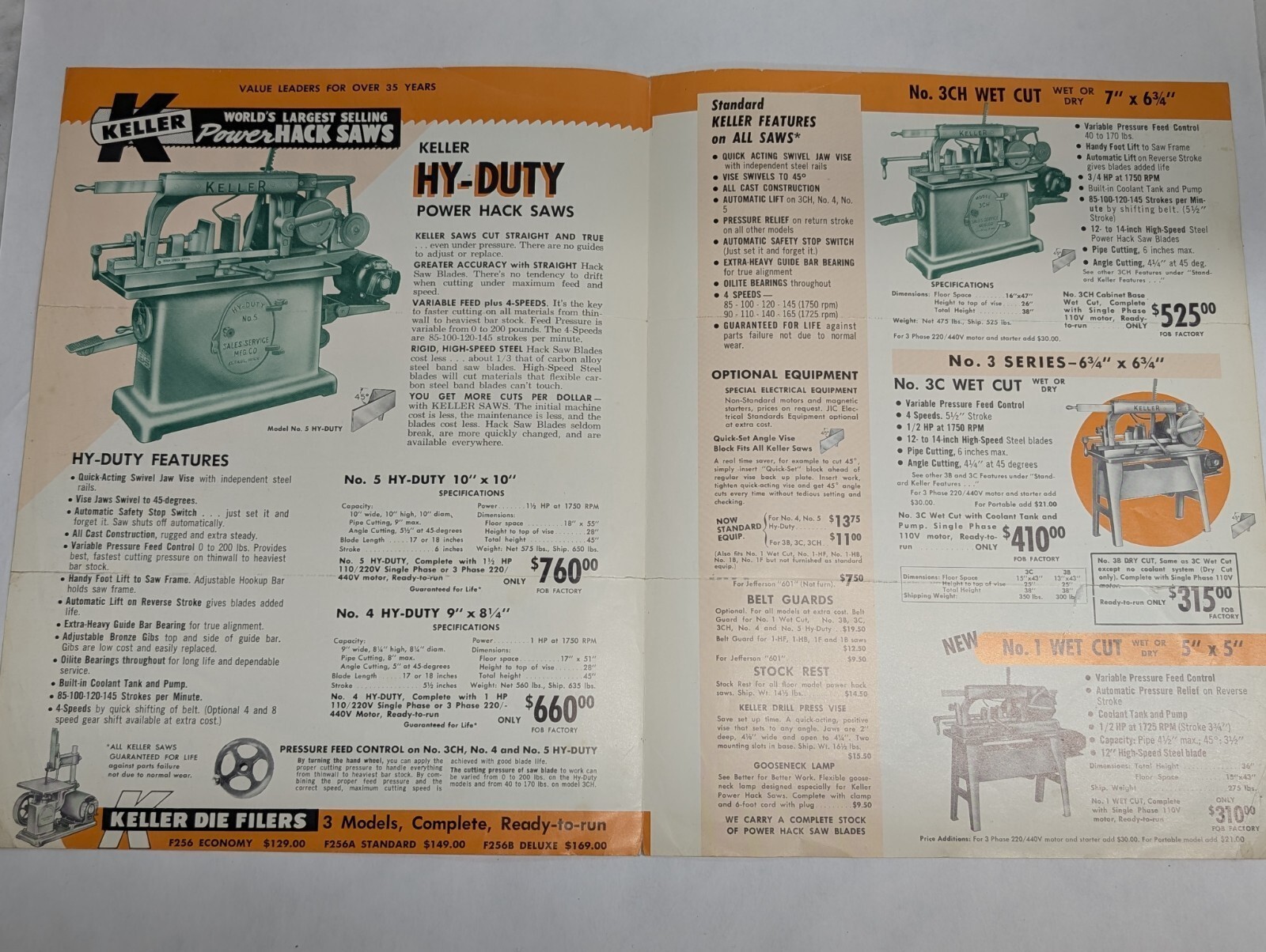 Keller Power Hack Saws Sales Brochure Catalog Prices Features Specifications