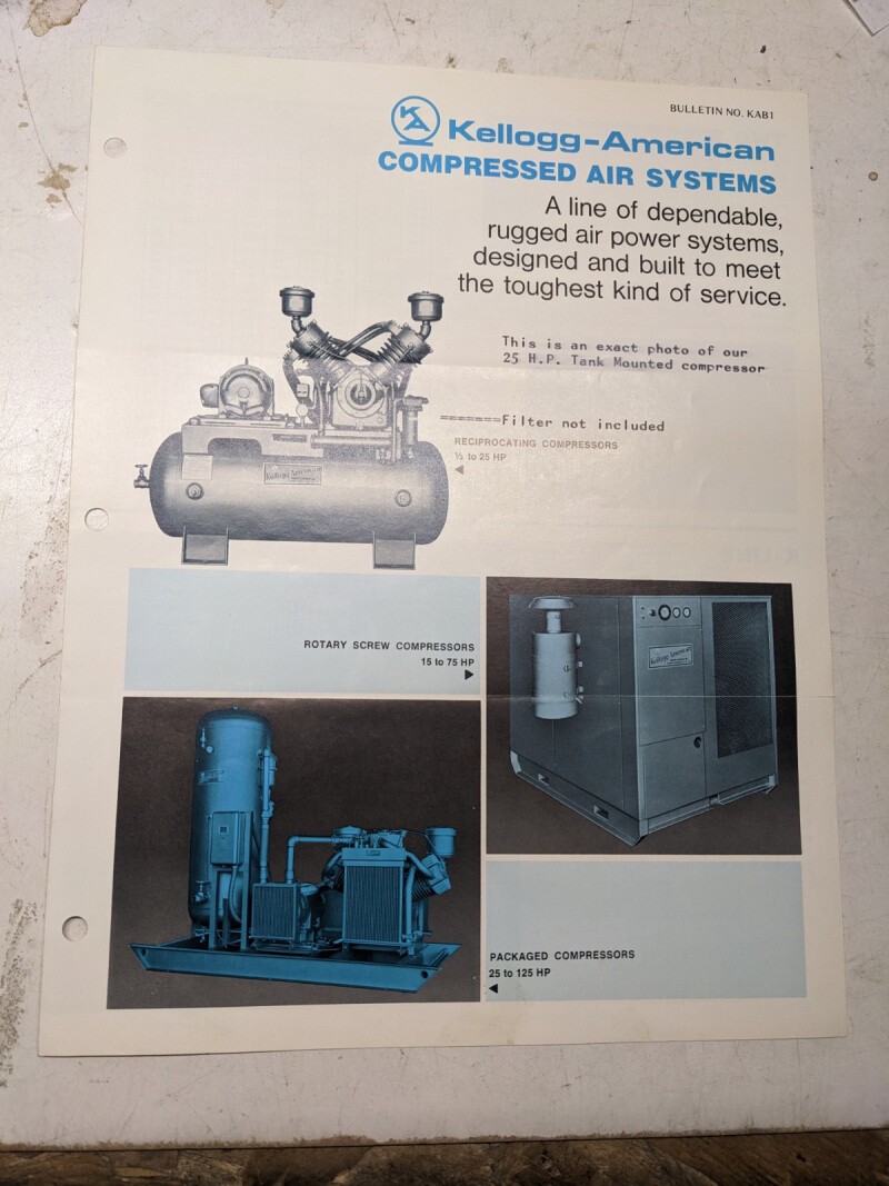 Kellogg American Compressed Air Systems Sales Brochure Catalog Specifications