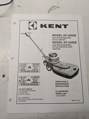 Kent Operating Maintenance Manual Parts List Book Burnisher Kf 2000 2500 E 1989