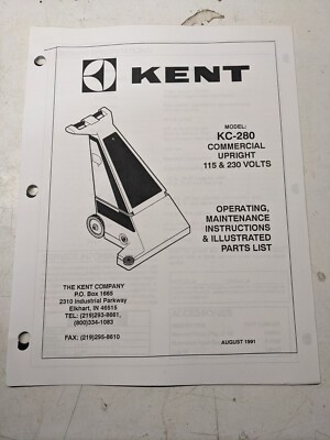 Kent Operating Maintenance Manual Parts List Book Kc-280 Upright 1991