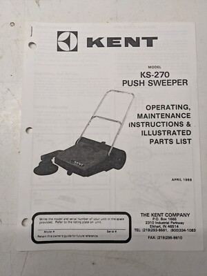 Kent Operating Maintenance Manual Parts List Book Ks-270 Push Sweeper 1988