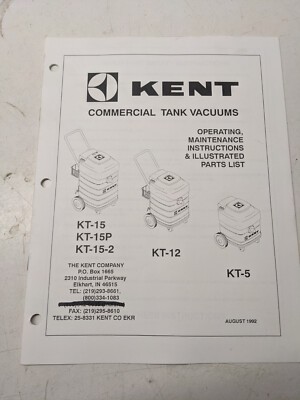 Kent Operating Maintenance Manual Parts List Book Vacuum Kt 15 12 5 P 2 1992