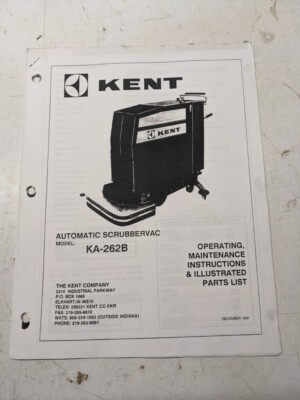Kent Operating Maintenance Parts List Book Service Manual Ka-262B Scrubbervac