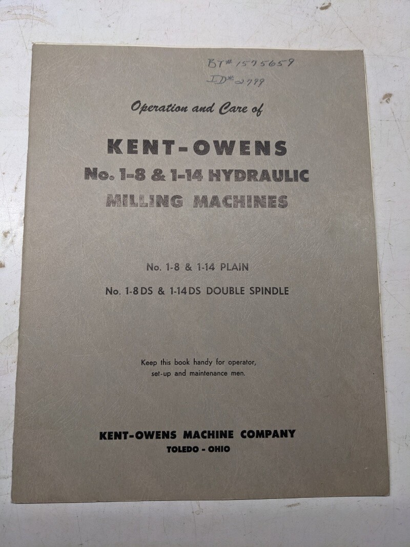Kent Owens Milling Machine Install Operator Service Manual #1-8 #1-14 Ds