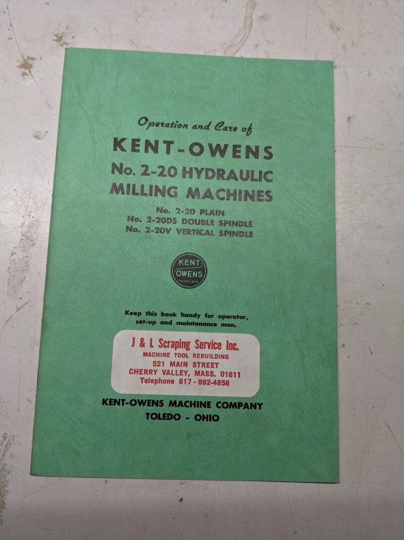 Kent Owens Operator Maintenance Service Manual #2-20 Hydraulic Milling Machine