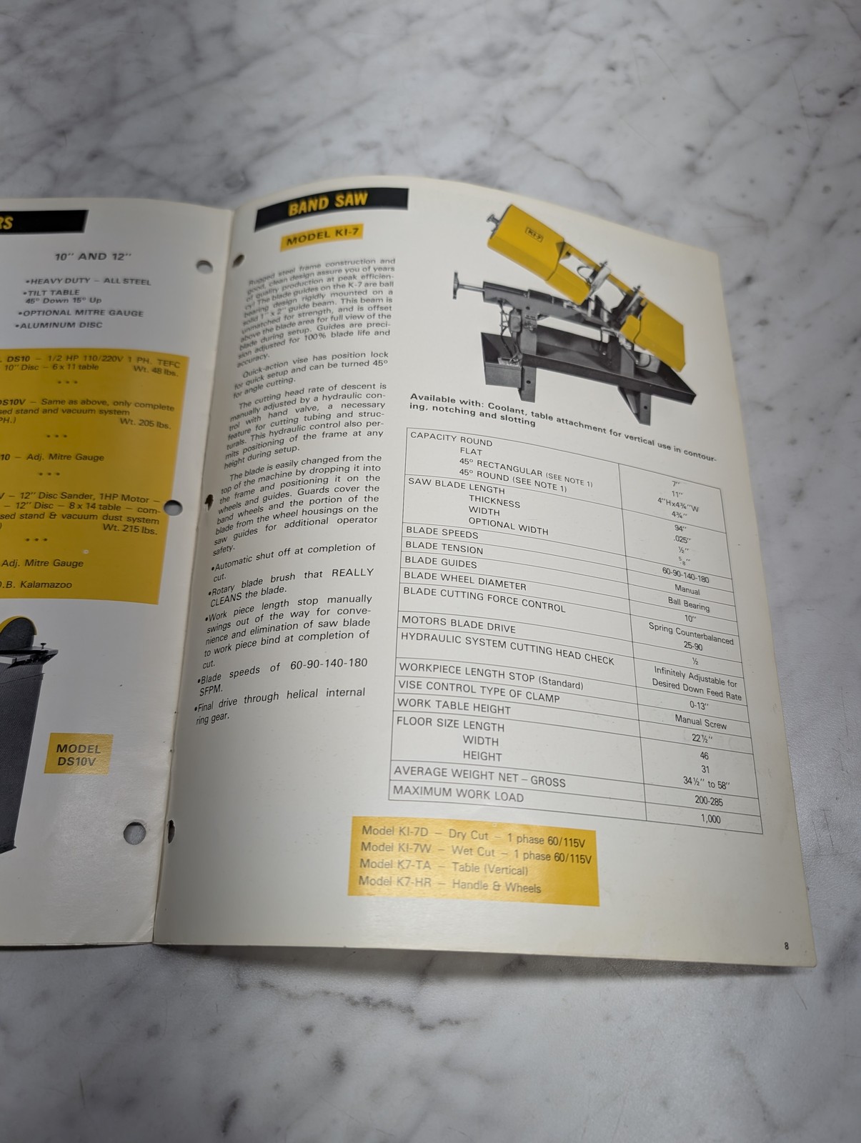 Ki Kalamazoo Industries Catalog K81 Abrasive Saws Belt Sales Brochure Literature
