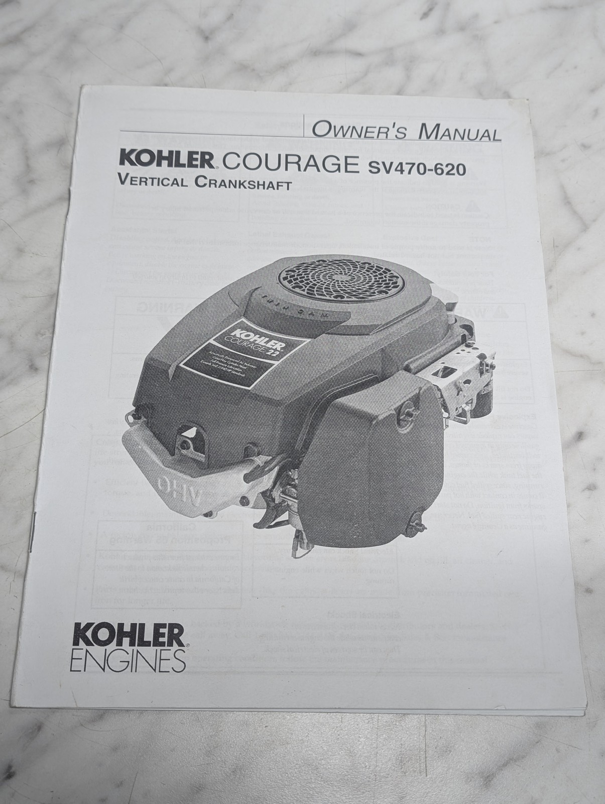 Kohler Courage Engine Sv470-620 Owner’S Manual Vertical Crankshaft 2008