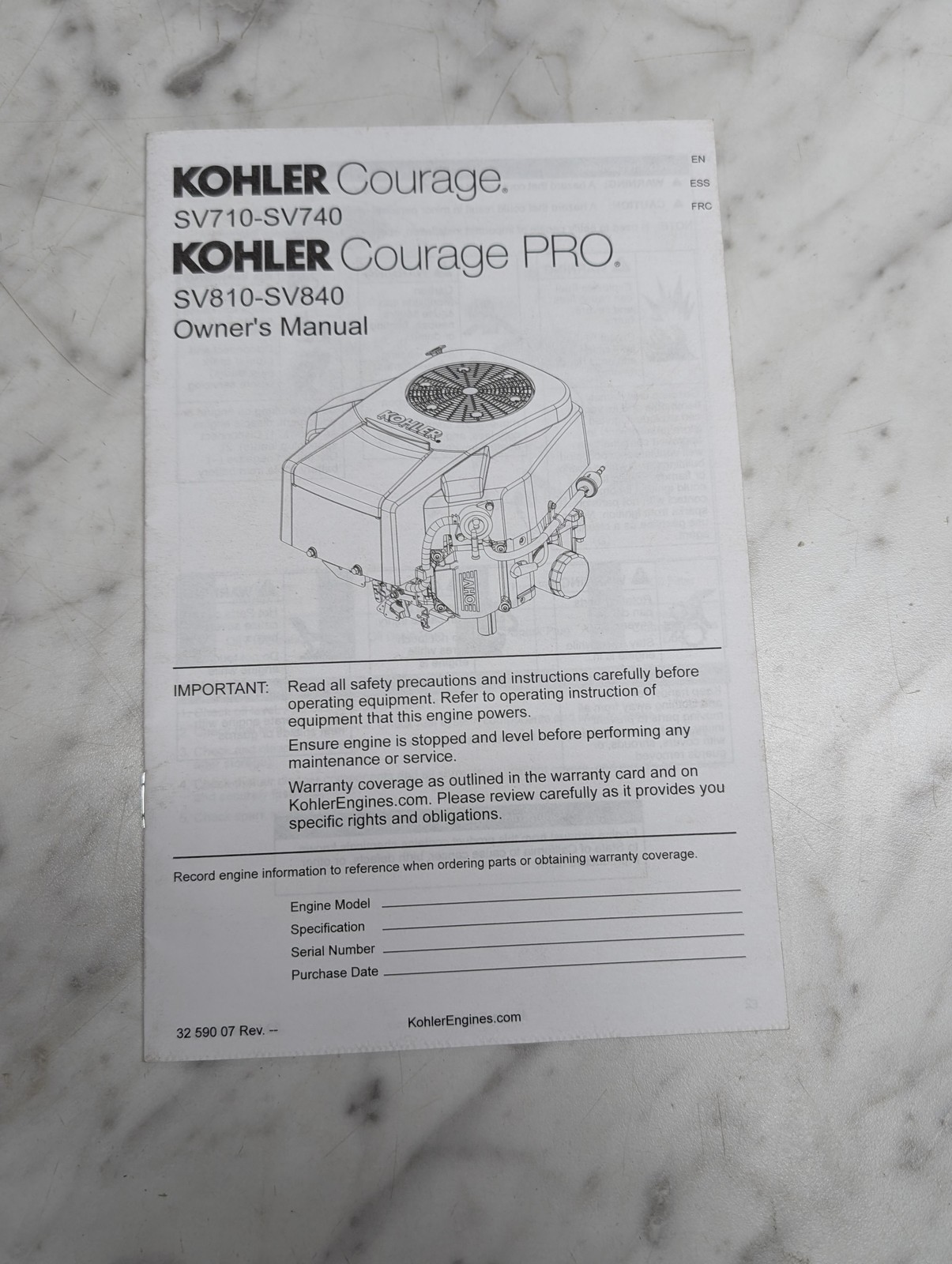 Kohler Courage Sv710 Sv810 Sv740 Sv840 Owners Operators Manual Engine