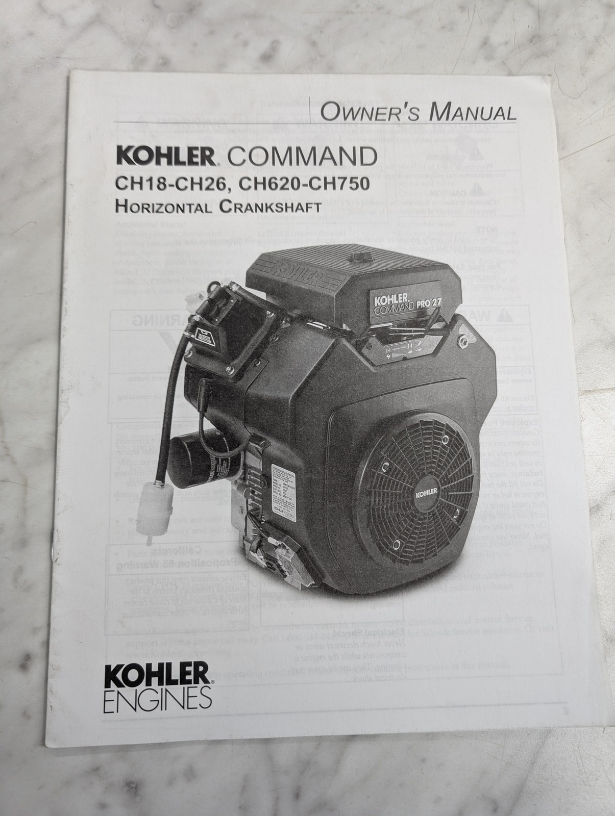 Kohler Engine Command 11-16 Hp Owner’S Operator’S Manual Ch18-Ch26 Ch620-Ch750