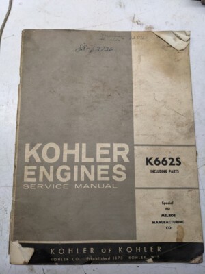 Kohler Engines Service Manual K662S Parts List Book Overhaul Shop Book
