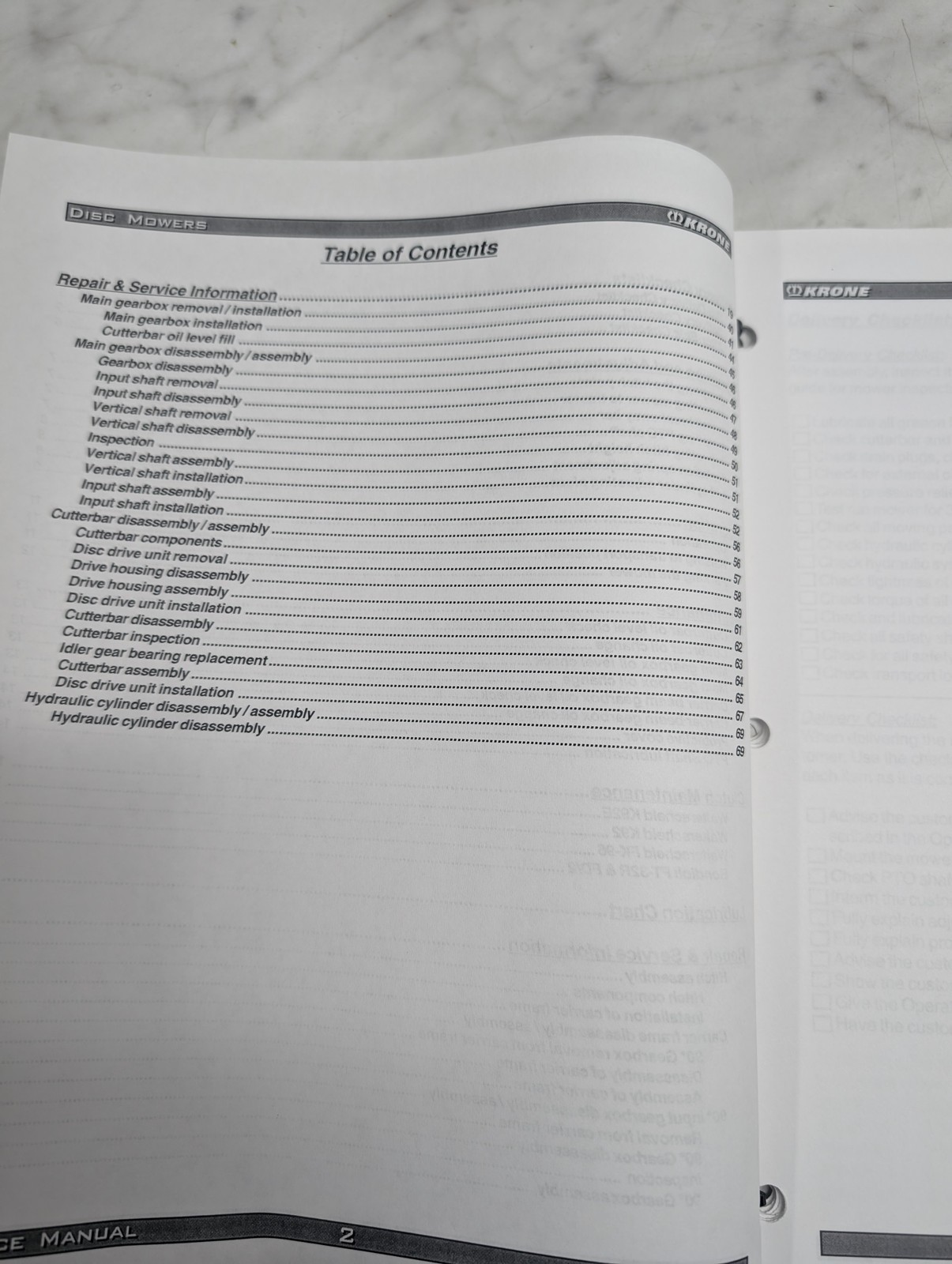 Krone Disc Mowers Service Manual Repair Maintenance Shop