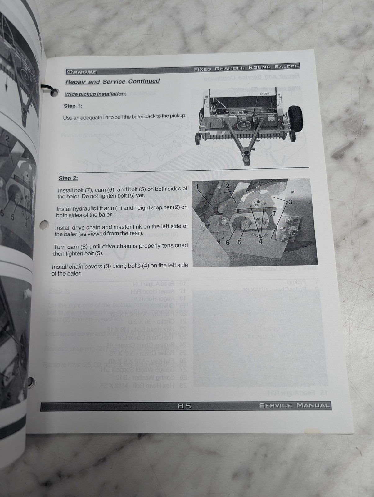 Krone Fixed Chamber Round Balers Service Manual Repair Maintenance Shop