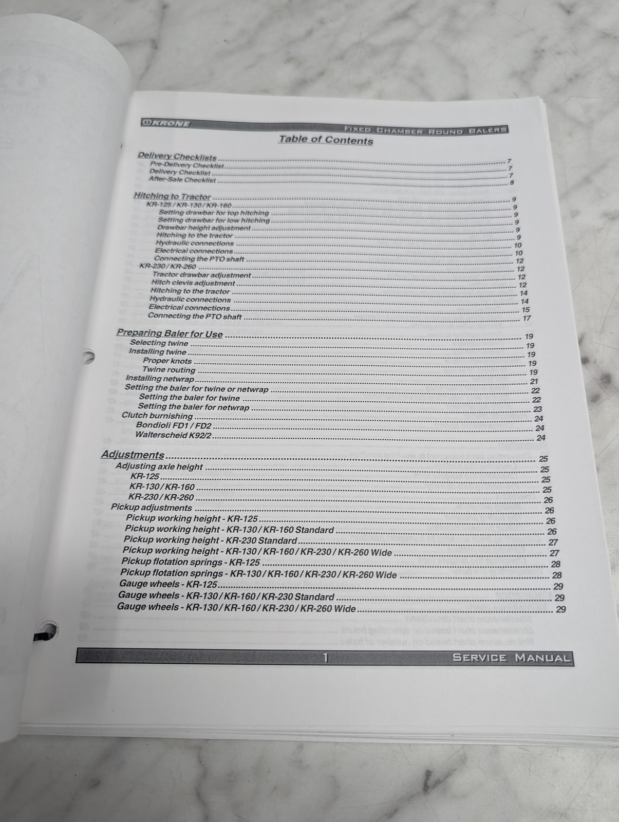 Krone Kr 125 130 160 230 260 Fixed Chamber Round Balers Service Manual