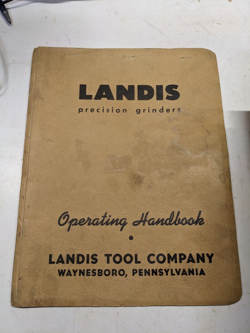 Landis Tool 10” X 20” H Grindering 1946 Parts Operators Handbook Manual