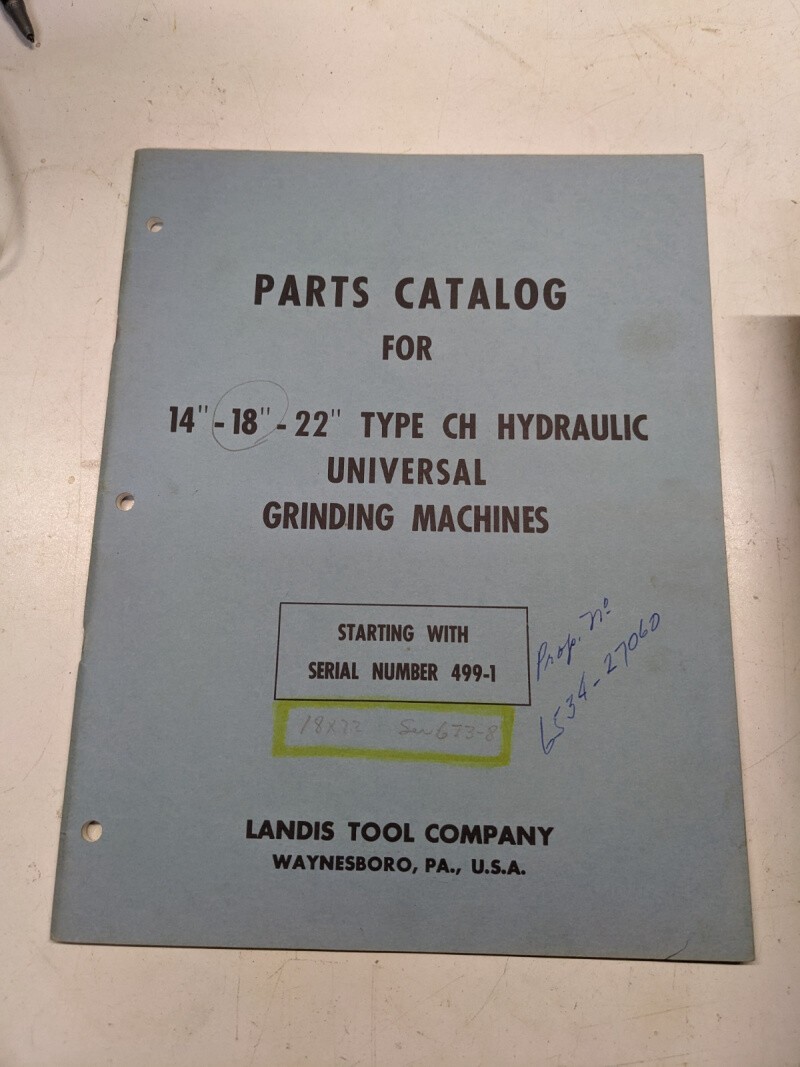 Landis Tool Ch 14 18 22 Universal Grinder 195 Part Catalog List Book Manualtype