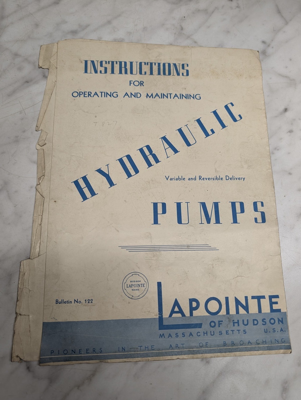 Lapointe Hydraulic Poumps Operating Instruction Maintenace Sheets