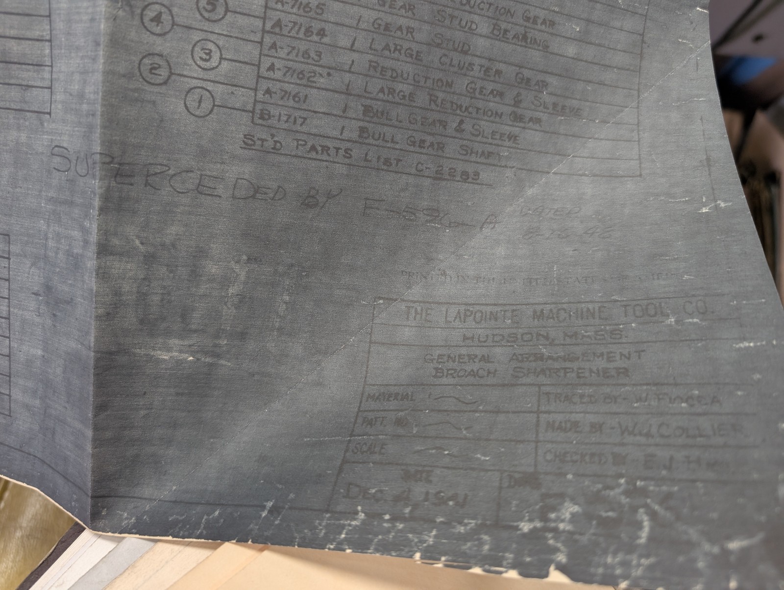 Lapointe Machine Tool Broach Sharpener Engineering Drawings Blue Prints Diagrams