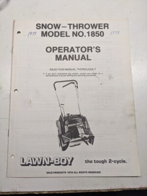 Lawn-Boy Operator’S Manual Shop Model 1850 1979 Snow Thrower Oem